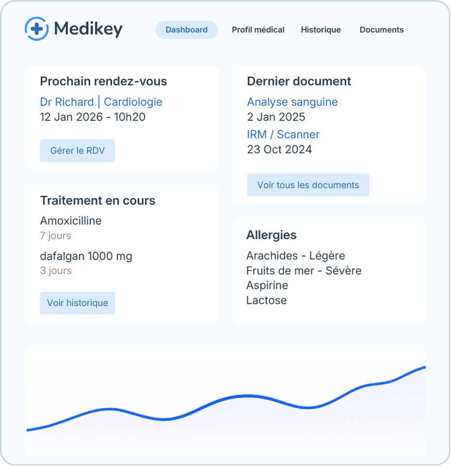 Consultez vos antécédents, vos documents, vos traitements et vos rendez-vous en un clic.